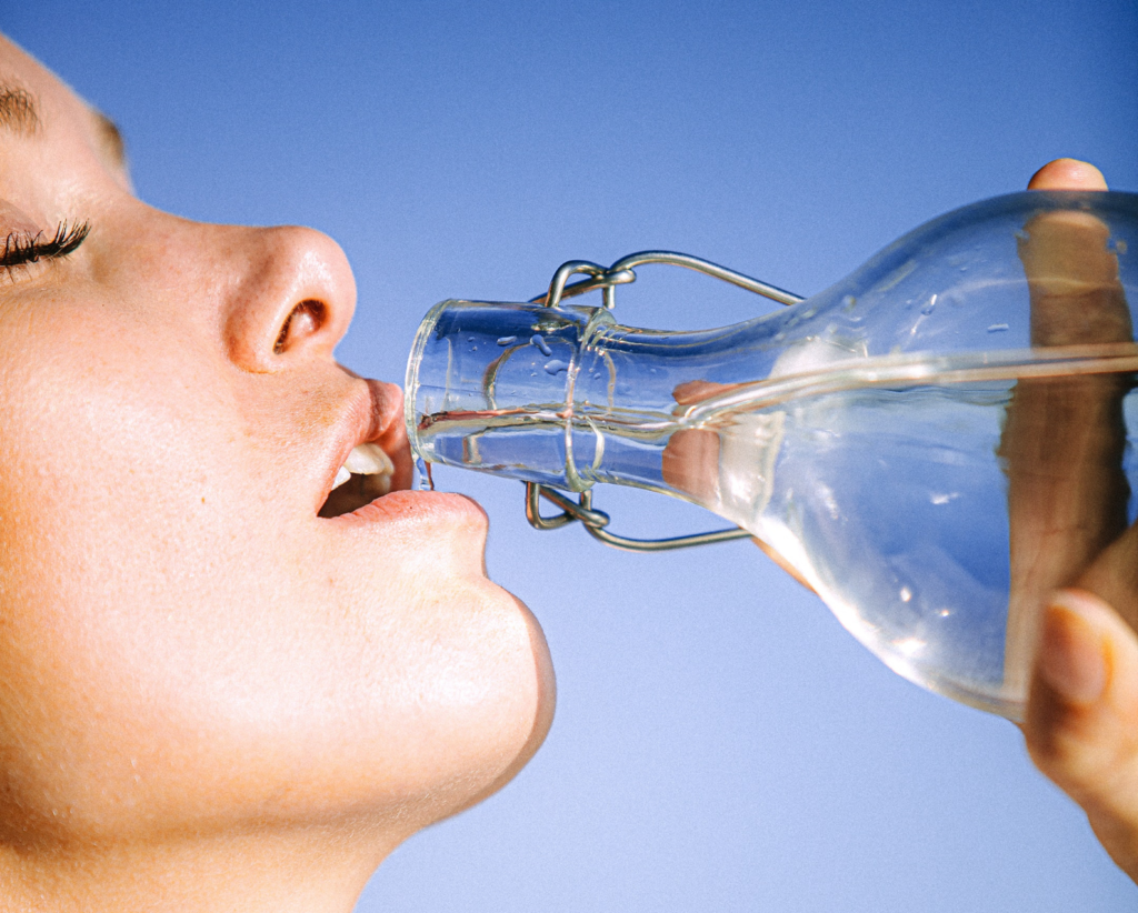 Dbając o piękną cerę nie można zapomnieć o jej odpowiednim nawodnieniu. Pijąc wodę, poprawiamy ukrwienie naszych naczyń krwionośnych, dzięki czemu jest ona promienna i pełna witalności. Ponadto odwodnienie wpływa na zaburzenie produkcji elastyny i kolagenu, co bezpośrednio przyczynia się na szybsze starzenie skóry. Zapewnienie 1,5-2 L wody organizmowi dziennie może zbawiennie wpłynąć na opóźnienie powstawania zmarszczek.